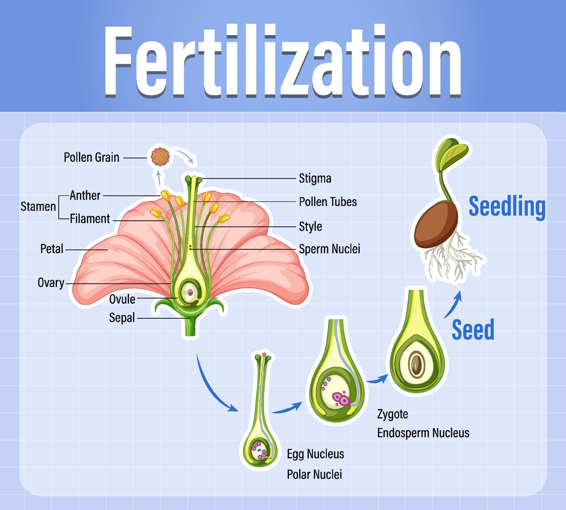 Diagram Of Pollination Of Flowering Plants 6158489 Vector Art At Vecteezy